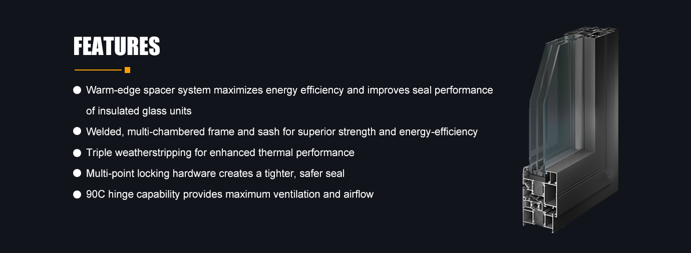 Energy-efficient casement windows can be difficult to find, but our casement window is ENERGY STAR-qualified. A closer look reveals energy-efficient features double-pane insulating glass and a multi-chambered mainframe. Our warm-edge spacer system and triple-point weatherstripping maximize energy efficiency to keep your home comfortable all year round.